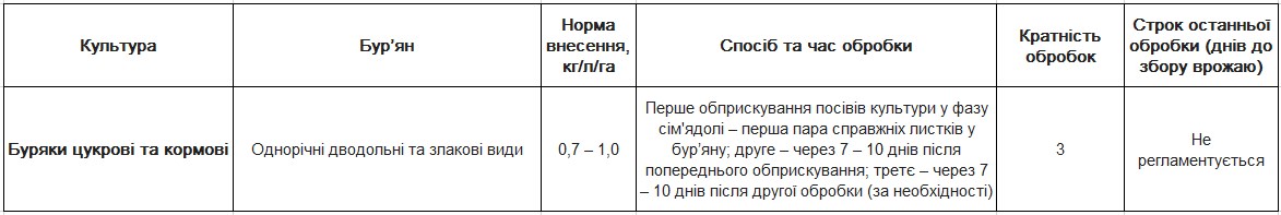 Інноваційний системний гербіцид для боротьби з дводольними та деякими однорічними злаковими бур’янами в посівах цукрового буряку.