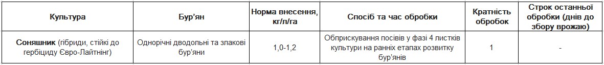 однорічних злакових і дводольних видів бур'янів в посівах соняшнику, який є