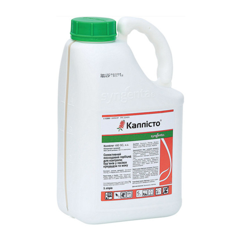 Каллісто 480 SC - післясходовий гербіцид для знищення однорічних та багаторічних дводольних бур'янів у посівах кукурудзи та маку.