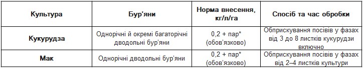 • Контролює бур’яни, стійкі до інших гербіцидів (наприклад, паслін чорний)