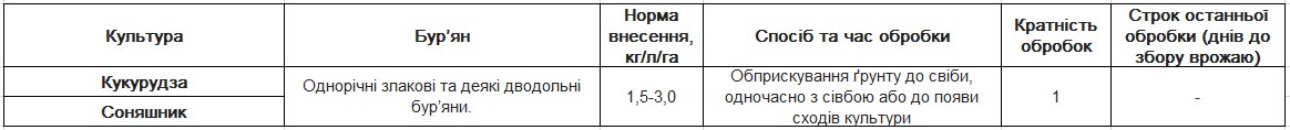 для захисту посівів кукурудзи, соняшнику та сої від однорічних дводольних та