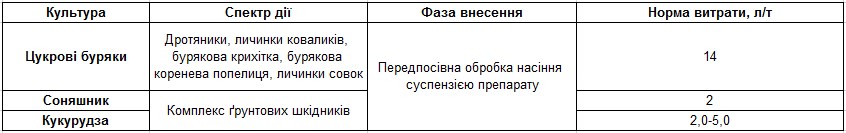 - Однаково потужно діє на різні види ґрунтових шкідників, зокрема на